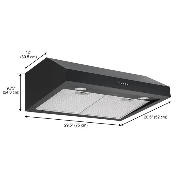 - 30 in. Ducted Under-Cabinet Range Hood with high grade 430 stainless steel finished in matte black