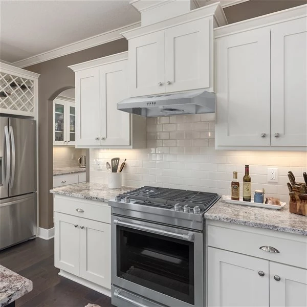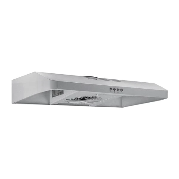 Aria offers a unique line of premium range hoods. This sleek modern design will complement any kitchen decor. The 30-in 220 cfm under cabinet range hood accommodates indoor and outdoor venting. It features a 2-speed push button and a minimum sound level of 3.4 sones for a quieter experience while range hood is active. It is easy to install, use and maintain. Enjoy top performance without compromising on style with Arias range hood, the perfect addition to your kitchen.