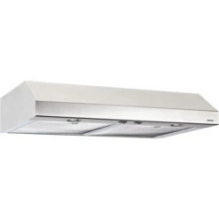 With its modern look and its stainless finish with black outline, this Broan T-style range hood comes to you from the Design collection, and it’s a great way to add a touch of elegance to your kitchen while keeping the air clean while you cook. Its bright LED lighting will enhance your cooking experience, while its touch-sensitive backlit controls are easy to clean. This range hood offers three fan speeds for a flow rate of up to 450 CFM. It sound volume registers at only 3.0 sones, so you can cook in peace.