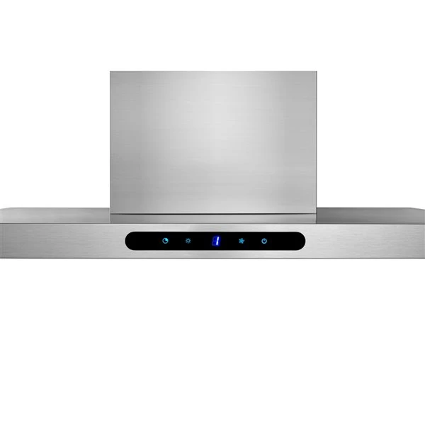 This Broan-NuTone wall mount chimney range hood features 4 speeds and 640 CFM max blower to quickly remove smoke, grease, and odours from your kitchen at a quiet noise level of < 0.3 sone at normal speed. With a bright 2-level LED lighting, capacitive touch controls, and a 15-minute delay setting, this wall mount range hood makes cooking a breeze. The two hybrid baffle filters are dishwasher-safe with a quick-release latch, while the optional telescopic flue extension accommodates 9 to 10 foot ceilings!
