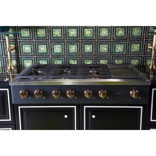 - Designed exclusively for use with Cafe 48″ professional ranges and rangetops