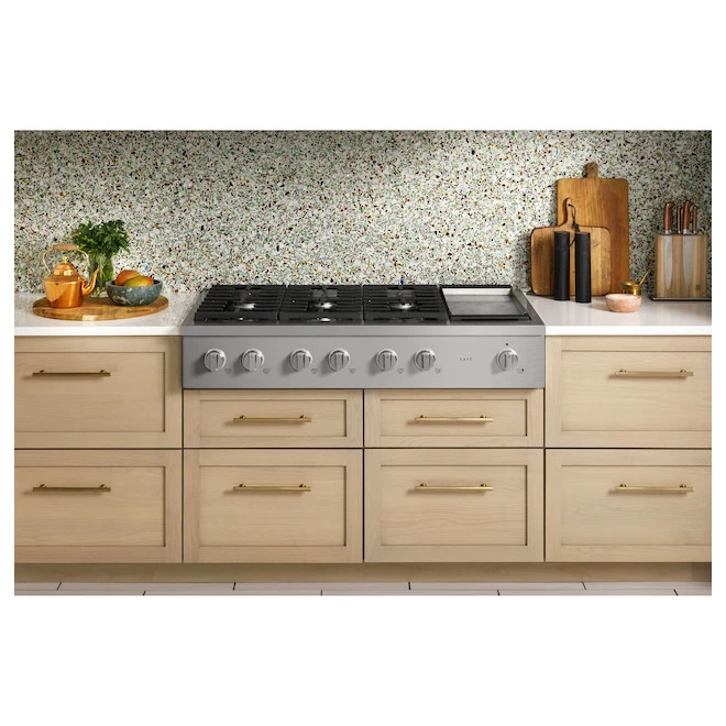 - Designed exclusively for use with Cafe 48″ professional ranges and rangetops