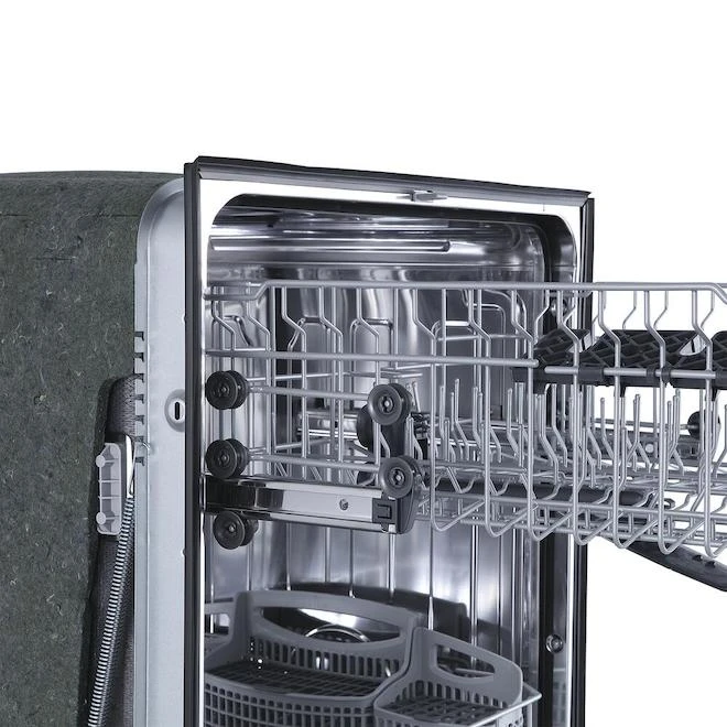 With a capacity of 14 place settings, the compact and versatile Comfee dishwasher offers excellent value for money. The appliance has a resistant stainless steel tub and 6 wash cycles, including a high-intensity cycle for heavy loads of dirty dishes, and a specialized cycle for glassware. Its 52 dB operating noise level ranks it among the quietest in the industry. In addition, it is an energy-efficient choice, being Energy Star certified for its low water consumption. This product is backed by a 1-year limited warranty on parts and labour.