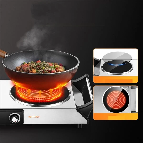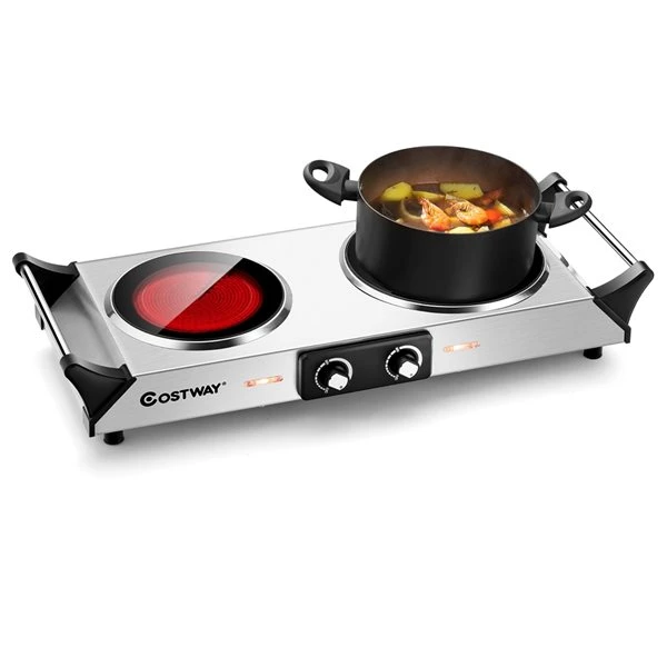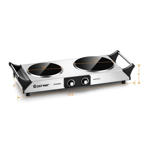 Designed with two different size burners, this countertop hot plate will provide you with a high efficiency cooking experience. It’s compatible with all cookware such as aluminum pans, copper pans, cast iron frying pans, etc., bringing maximum convenience. With 1800 W of power, it leaves an impressive performance and heats up the food quickly. Heat can be evenly distributed through infrared radiation to offer the optimal temperature. The specially designed overheat protection prevents accidents for a safer cooking experience.