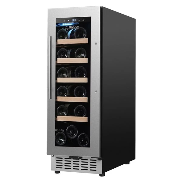 Protect and preserve your wine collection with Equator’s 18-Bottle Wine Refrigerator. Measuring 32.28-in x 11-in x 23-in (H x W x D) and 1.73-cu ft, this powerfully compact refrigerator was engineered to keep your wine optimal for swirling and sipping. The compressor fan cooling eliminates potential hot spots while the single temperature control keeps your wine perfectly chilled. And the integrity of your wine is always protected with a carbon filter absorbing impurities in the air and the anti UV glass blocking harmful rays. Designed to adapt to any of your needs with adjustable feet, a reversible door, moveable shelves, and freestanding or built-in capabilities, your wines can age with sophistication and grace in any space around your home.