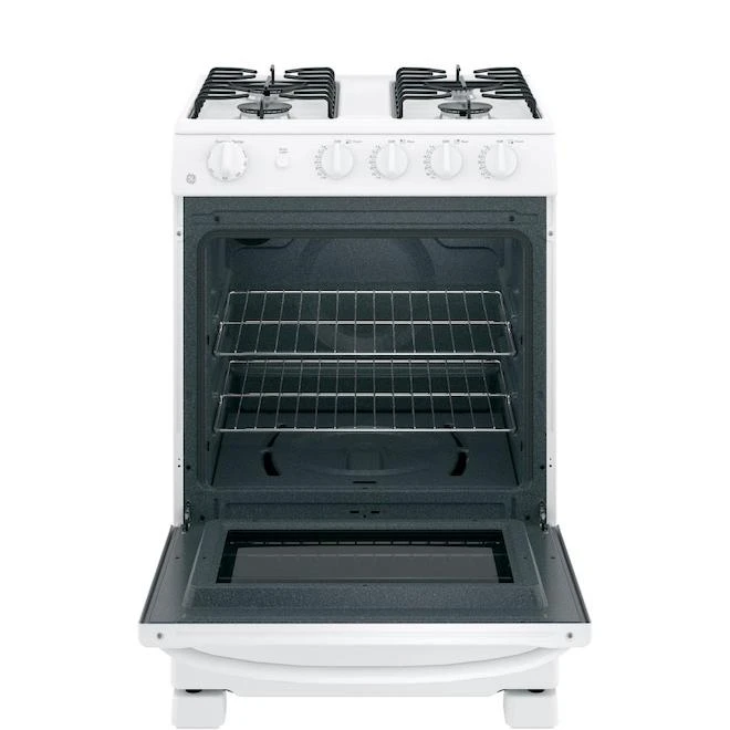 GE 24-in Free-Standing Gas Range With Removable Backsplash And Broil Drawer – 2.9 Cu Ft – White