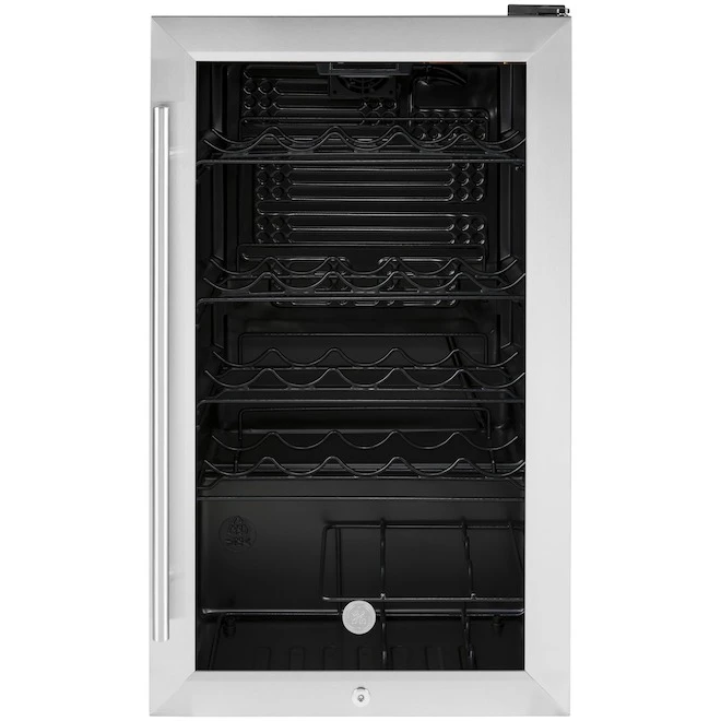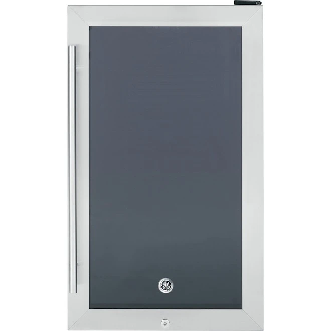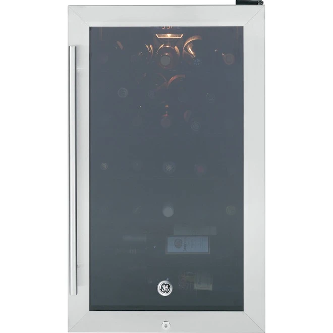 Great as a wine cellar or as a storage space for your favourite drinks, this sleek GE beverage center with 4.1 cu. ft. of capacity can hold up to 30 wine bottles. The large glass window and interior lighting showcase your beverages so you can easily make your selection. Enjoy elegance with convenience, as this unique beverage center features a stainless steel door and five contoured racks. Electronic controls let you easily set the desired temperature (between 41°F and 61°F). This beverage storage unit allows for installation flexibility as it is built-in and freestanding capable. Requires standard countertop height for under counter installation.