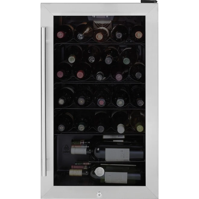 - Stainless steel door with large glass window showcases your wines for easy selection