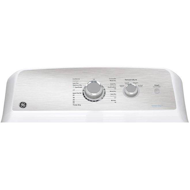 Enjoy the ultimate in convenience and an optimal performance with this GE Appliances 7.2-cu ft gas dryer. This appliance is equipped with the SaniFresh cycle to eliminate and remove bacteria and with Sensor Dry to measure moisture and prevent over-drying. Plus, with 4 temperature selections and a timed drying, this dryer offers everything you need to provide the best care for your clothes. Limited 1-year warranty on parts and labour.