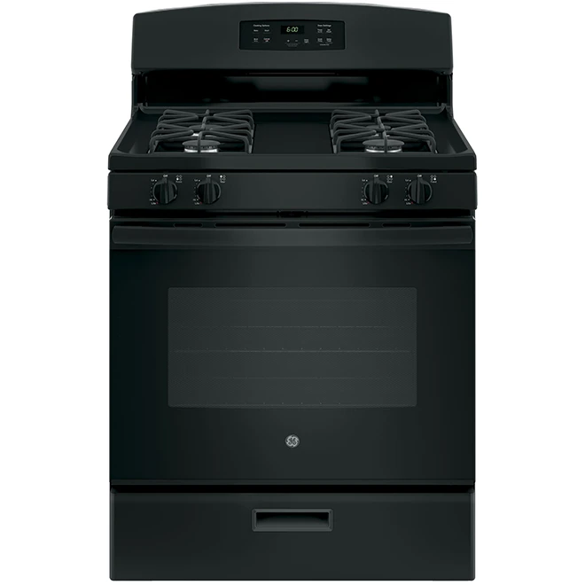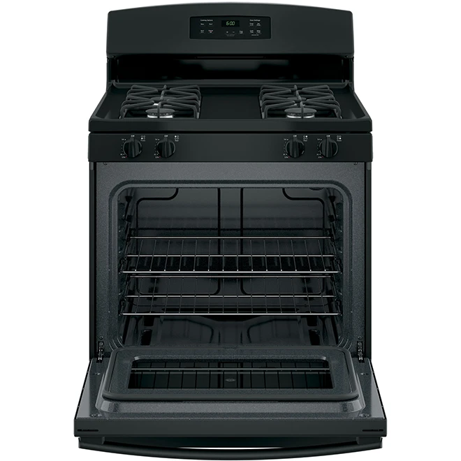 GE Appliances Freestanding Gas Range – 30-in – 5.0 Cu. Ft. – Black – Electronic Control