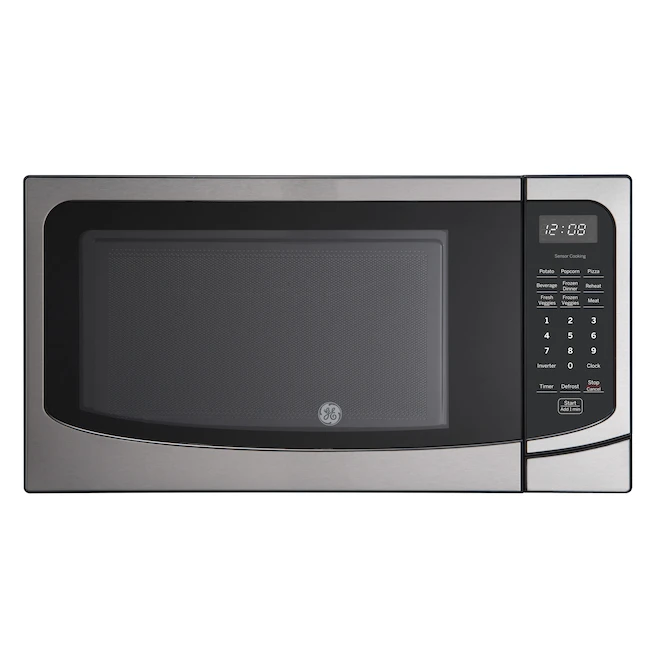 Enjoy the convenience of this 1.6 cu. ft. countertop stainless steel microwave by GE Appliances. Equipped with 10 power levels for cooking versatility, a child lock function and instant controls, it provides everything you need for an easy operation. It also features sensor cooking controls that automatically adjust time and power for consistently delicious results, while the inverter technology provides faster cooking time and even cooking. In addition, the weight/time defrost option gives flexibility for automatic or your own desired timing. Matching optional trim kit: JX30ASSC.