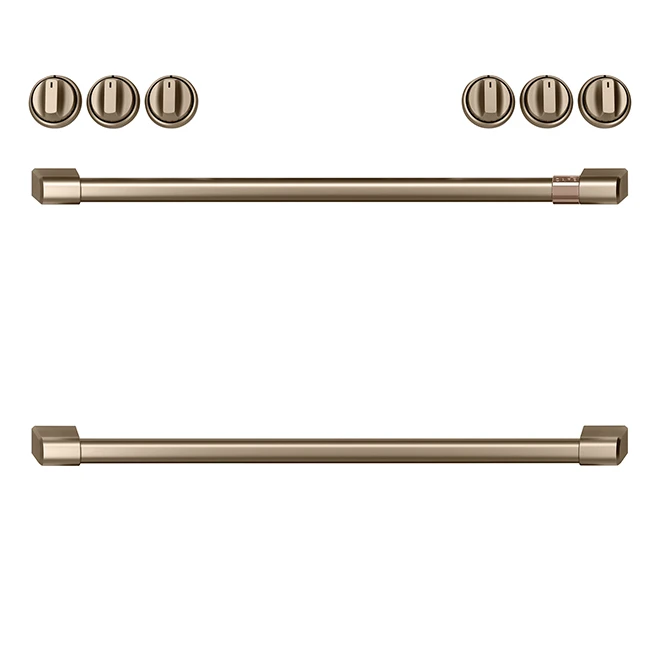 Customized your gas range with this set of artisan-inspired brushed bronze control knobs and handles exclusively crafted for GE Café® range models; CCGS700P3MD1, CCGS750P4MW2 and CC2S900P3MD1. This product is backed by a 1-year limited warranty.