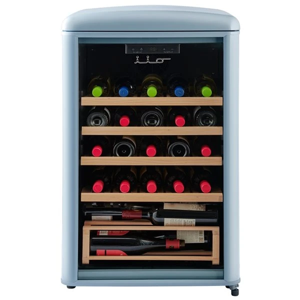 Retro-styled, elegant and affordable wine storage in a variety of stunning colours that are designed to turn your space into your place. This chic and attractive 30 bottle capacity, freestanding, wine cooler is a complement to any wine lover’s home, whether needed in your kitchen, your dining room, or even your entertainment room. The upfront electronic controls allow you to manage the single-zone temperature easily and effectively, enabling you to keep favourite wines at the ideal drinking temperature. With 6-level, 4 adjustable slide-out shelves, access is easy and convenient, making it simple to select just the right bottle for any occasion, while the removable bottom rack for larger bottles gives you added flexibility in bottle storage and selection. While the low vibration compressor limit sediment disturbance in the bottles thus protecting flavours and aromas and enhancing the customer taste experience.