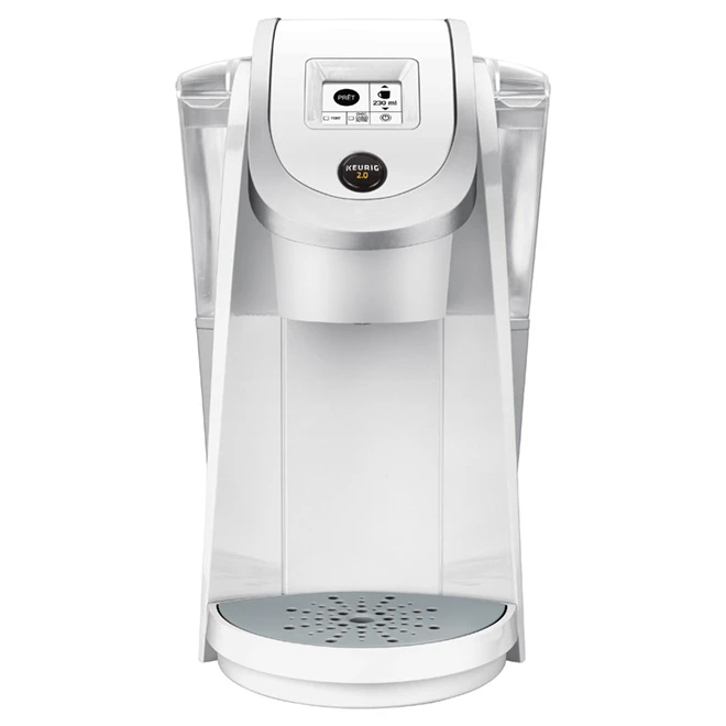 Make delicious hot beverages with just a touch of a button with this Keurig K200 Series coffee maker. Whether you’re in the mood for a cup or only a whole pot will do, this coffee maker is designed for single-serve use or can brew an entire carafe (sold separately). It is compatible with K-Cup(R), K-Mug(TM), and K-Carafe(TM) pods and includes a water filter handle and charcoal water filter cartridge for fresh, flavourful results. Strength control lets you brew your coffee to suit your tastes, and the reservoir holds up to 1.2 liters (40 oz) of water. The coffee machine also features an energy-saving mode and auto shutoff function, along with an easy-to-use touch display. The coffee maker has a white finish that looks great with any kitchen décor.