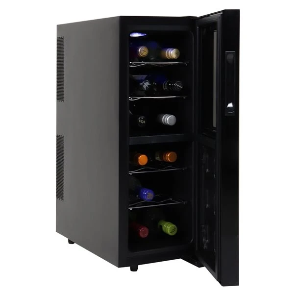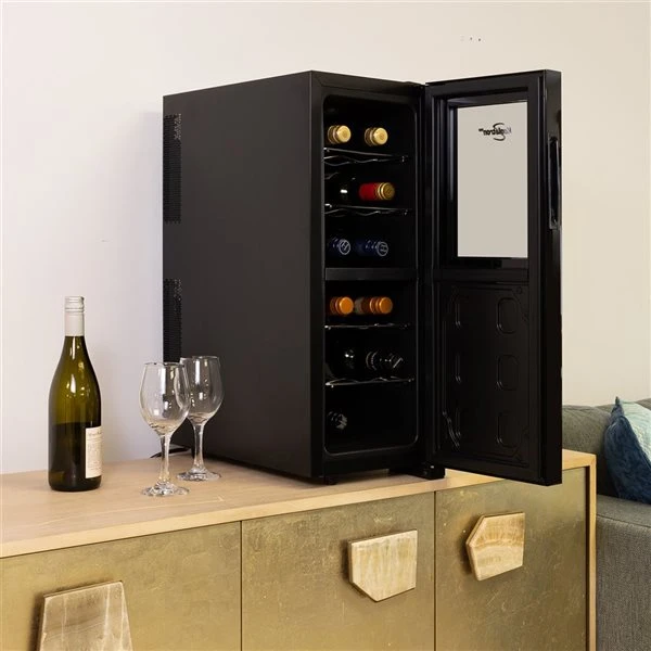 Store your favourite wines at their ideal temperature with Koolatron’s elegant and affordable luxury wine storage. This 12-bottle thermoelectric wine fridge with removable racks, LED interior light, and UV-blocking glass keeps your wines safe and ready to enjoy. Store up to 6 bottles of red wine in the upper zone at 55-66°F (12-18°C) and up to 6 bottles of white or sparkling wine in the lower zone at 42-66°F (6-18°C).