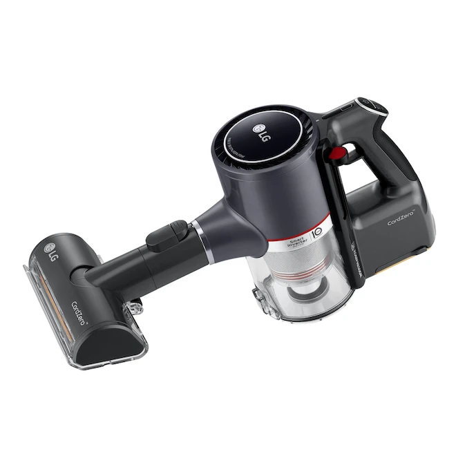 The LG CordZero(MC) A9 Stick Vacuum boasts strong suction and two rechargeable, detachable quick release batteries that let you clean and charge at the same time for up to 80 minutes of uninterrupted performance. Turn the vacuum on and off easily, or select different power levels, including Turbo mode, with the touch of a thumb. That means less strain on your hand and a more comfortable grip. Extend the life of your vacuum with easy to maintain removable and washable filters. Unlike other vacuums that only let you wash the filter, this vacuum lets you wash the pre-filter, fine dust filter and the cyclone system to clean away dirt and keep your vacuum running at its best. This product is covered by a 1-year limited warranty.