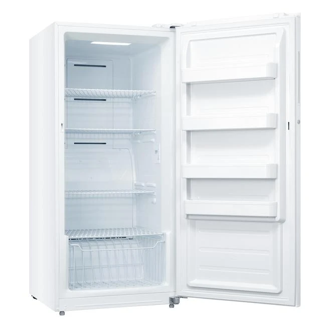 This 13.8 cubic foot convertible upright freezer by Midea is equipped with durable metal shelves. High-quality insulation and sealing technology make it perfect for the garage, basement, or other non-climate-controlled areas. The convertible function between freezer and refrigerator provides the ultimate flexible solution for food storage.