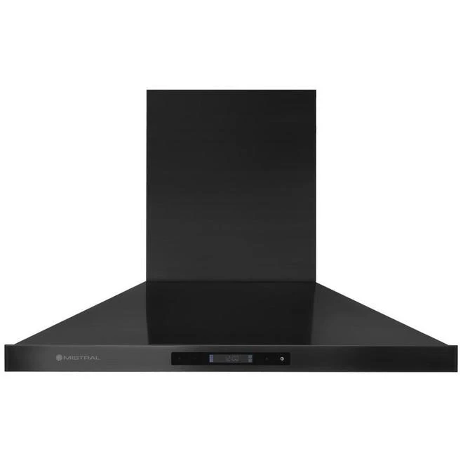 Add a contemporary and refined touch to your kitchen with this 29.5-in Mistral wall mount range hood. Made of black stainless steel, this hood with a vitrified black finish front offers a superb modern sleek design and is easy to clean. Its high-quality aluminum micro-perforated filters are dishwasher safe. This high performance 450 CFM range hood with 3 speeds effectively retains smoke and steam. Your cooking surface will always be well lit with its LED lights. With a circular evacuation of 6 inches, its silent fan is greatly appreciated when in use. Soft touch digital control. This product is backed by a one-year limited warranty on parts.