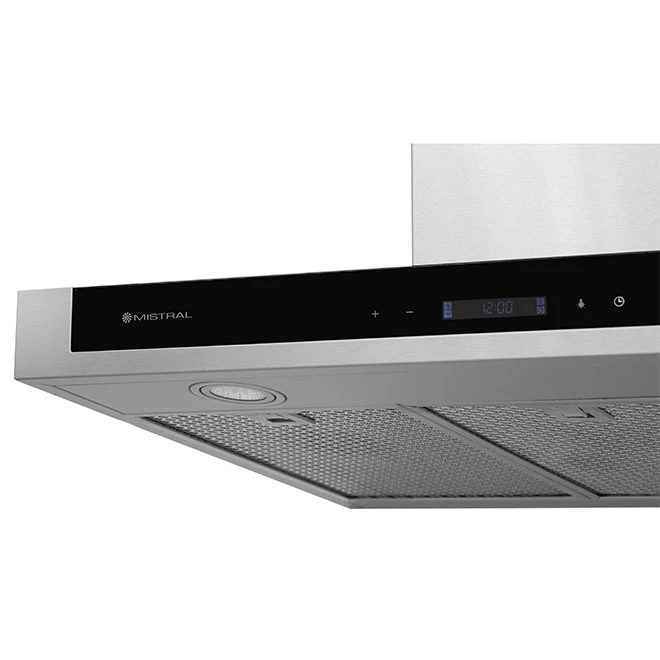 Add a contemporary and refined touch to your kitchen with this 29.5-in Mistral wall mount range hood. Made of stainless steel, this range hood featuring a vitrified black finish front offers a superb modern sleek design, is easy to clean, and its high quality aluminum micro-perforated filters are dishwasher safe. This high performance 450 CFM range hood with 3 speeds effectively retains smoke and steam and your cooking surface will always be well lit thanks to its 3-W LED lights. With a circular evacuation of 6 in, its silent fan is greatly appreciated when in use. Soft touch digital control. This product is backed by a one-year limited warranty on parts.