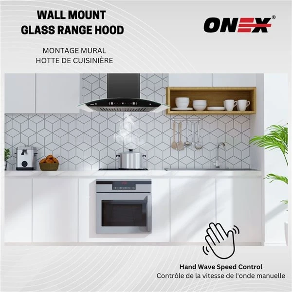 Premium quality Range Hood with 800 cfm airflow, 6 speed fan, Powerful Motor, 30-inch duct able range hood will quickly ventilate your kitchen and keep the noise level as low as 52 dB to bring you an amazing cooking experience. ONEX range hood comes with two baffle filters. The baffle filters are easy to pop out and can be places in the dishwasher for easy to clean. Our baffle filters trap smoke and cooking grease/oil efficiently. Leaves your kitchen clean with fresh air. Easy to use push-button control panel makes it extremely easy to operate for anyone. ONEX offers heavy-duty fans with Three Speed control for every kind of cooking. It is suitable for different cooking methods. Comes with 2 x 2 W LED lights to make your cooking area brighter. ONEX made it extremely easier for you to control the fan speed by just waving your hand in front of the control panel.