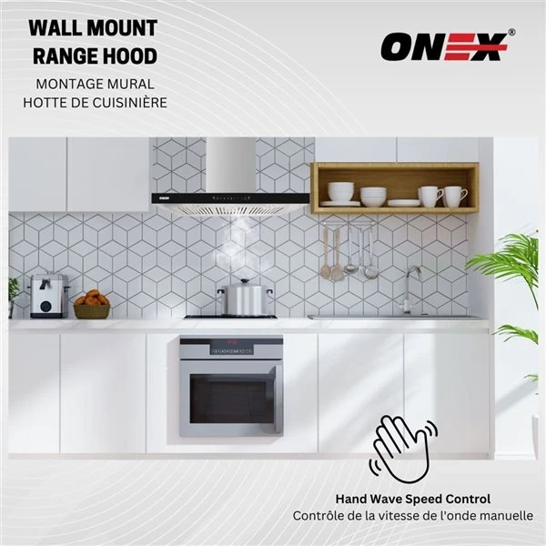 Premium quality with 900 cfm airflow, 6 speed fan, powerful motor, 30-inch duct able range hood will quickly ventilate your kitchen and keep the noise level as low as 52 dB to bring you an amazing cooking experience. ONEX® Range Hood comes with three baffle filters. The baffle filters are east to pop out and can be placed in the dishwasher for easy cleaning. Our baffle filters trap smoke and cooking grease/oil efficiently. Leaves your kitchen clean with fresh air. Easy to use soft touch control panel makes it extremely easy to operate for anyone. ONEX offers heavy-duty fans with three speed controls for every kind of cooking. It is suitable for different cooking methods. Comes with 4 x 2 W LED lights to make your cooking area brighter. We made it extremely easier for you to control the fan speed by just waving your hand in front of the control panel.