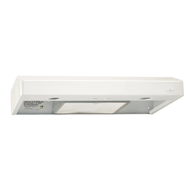 This Venmar range hood of 250 PCM offers an attractive look and an excellent lighting of the cooking surface. The quiet fan has 2 speeds and includes a high-efficiency filter. Its halogen lights procure 50 watts of lighting which can be set to 2 light intensities. This product is backed by a 1-year warranty on parts and labour.